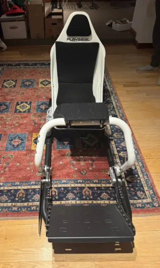 Vendo silla Playseat en muy buen estado, lista para montar tu setup de simracing. Estructura sólida y cómoda, perfecta para volante y pedales. Utilizada únicamente en entorno profesional para rodaje de campaña audiovisual de Logitech protagonizada por Fernando Alonso. Uso puntual y cuidado. Tiene un par de muestras de uso estético en el metal que se puede apreciar en la foto. Pero mantiene su estado y funcionalidad perfectamente. Ideal si ya tienes volante o quieres empezar tu simulador. Preferible venta en Madrid. Preguntar sin compromiso.