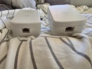 Vendo pareja de adaptadores Powerline (PLC) marca TP-Link, modelo TL-PA4010 (AV600 Nano). Son ideales para llevar internet a habitaciones donde la señal WiFi es débil o inestable. Funcionan transmitiendo la señal a través del cableado eléctrico de la casa. Es mucho más estable que un repetidor WiFi normal. Características: Velocidad: Hasta 600 Mbps de transmisión de datos. Conexión: Puerto Ethernet para conectar por cable PC, consola (PS5/Xbox), Smart TV o decodificador. Diseño: Modelo "Nano", muy compacto y discreto. Estado: En perfecto estado de funcionamiento. Estéticamente muy bien cuidados.