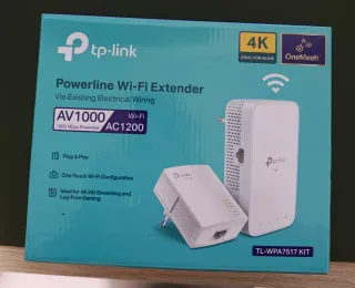 TP-Link TL-WPA7517Kit Powerline 1000Mbps Protocolos HomePlug AV y HomePlug AV2 Punto de acceso WiFi AC750 Incluye: - emisor: TL-PA7017 - receptor con puerto Gibabit y punto de acceso que emite Wifi 4 (802.11n) y 5 (802.11ac): TL-WPA7517 - cable Ethernet - caja e instrucciones Tengo otro producto compatible con éste: TP-Link TL-WPA2220KIT