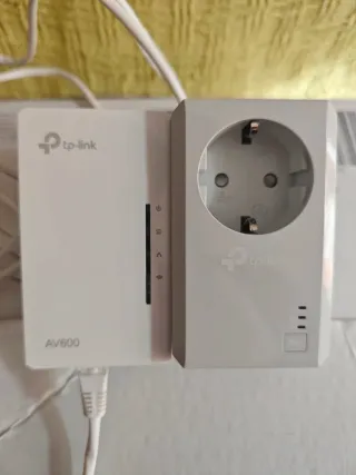 Pack de 2 PLC TP-Link AV600 con enchufe integrado, en muy buen estado y funcionando correctamente. Ideales para llevar la conexión de internet por la red eléctrica del hogar. 🔹 Velocidad hasta 600 Mbps 🔹 Enchufe passthrough (no se pierde toma eléctrica) 🔹 Conexión estable y sencilla 🔹 Plug & Play 🔹 Marca TP-Link, modelo AV600 (TL-PA4010P) 🌐 Perfectos para casas grandes o zonas sin buena señal WiFi ✅ Probados y funcionando #tplink #plc #powerline #internet #red #wifi #hogar #informatica #av600