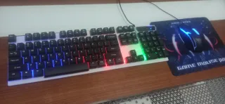 Kit de gaming completo para mejorar tu experiencia de juego. - Teclado con retroiluminación LED. - Ratón con diseño ergonómico y retroiluminación. - Alfombrilla de ratón incluida. -Auriculares con micrófono incorporado -Conexión UsB *Para activar retroiluminación en el teclado hay que pulsar el botón scroll lock y para apagarlo también* Sólo abierto para comprobar que está todo perfecto y no falta nada Recogida en Santa Pola y también envió por wallapop [por inpost]