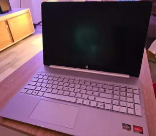 Portátil HP con acabado plateado y gris. Prácticamente nuevo y sin usar. - Procesador AMD Ryzen 5 7520U - 16GB de memoria RAM. - Almacenamiento SSD de 1TB. - 15.6 Pulgadas FHD - Windows 11 incluido