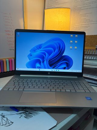 Ordenador portátil HP en color plata. Ideal para tareas diarias y entretenimiento. - Pantalla de 15 pulgadas. - Teclado numérico integrado. - Diseño moderno y ligero - Procesador i7-1065G7 - 8 GB de Ram - Windows 11 Home - 477 GB de almacenamiento - tiene un arañazo muy pequeño en la parte de arriba, nada importante precio algo negociable