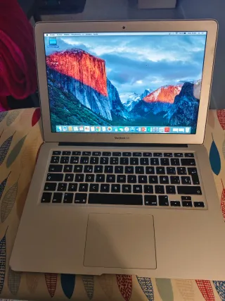Portátil MacBook Air de 2015. Inclye cargador. OSX El Capitan versión 10.11.16. LA BATERÍA sin que el mac esté conectado es BASTANTE LIMITADA (1h-2h)!! Excepto la falta de autonomia funciona pefectamente. - 13,3 pulgadas--> 1440x900 (principios de 2015) - intel hd graphics 6000 15.36 mb - Procesador 1.6ghz intel core i5 - Memoria Ram 4GB 1600 MHz DDR3. - Almacenamiento 125 GB - Gráficos intel HD Graphics 6000 15:36MB - NÚMERO de serie. C1MQXCEJG940. - Diseño delgado y ligero. - Pantalla Retina. - Teclado retroiluminado.