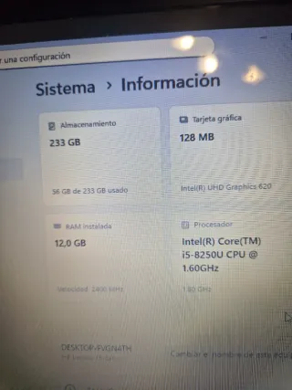 Enciende en 10 segundos, está puesto a punto y todo lo básico ya instalado. Ideal para ofimatica, navegación, edición básica, etc… 📹Te mostramos el producto en vídeo y te lo presentamos al detalle. 🤝Te ayudamos a valorar si se adapta a tus necesidades. 🛠️Incluye 15 días de asistencia remota gratuita. ⚙️CARACTERÍSTICAS: Procesador: Intel i5 10210U 8CPUs 2.0GHz RAM: 16GB DDR4 Almacenamiento: -128GB SSD + 1000GB HDD Batería: 🔋2,3h Gráficos: Intel UHD Pantalla: 15’6 pulgadas Sistema Operativo: Windows 11 WIFI SI Bluetooth SI 🔌 CARGADOR - Sí 🪛MANTENIMIENTO Cambio de pasta térmica. Limpieza interior y exterior. Control de temperatura r