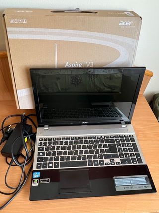 Portátil Acer Aspire V3 en color negro. Incluye su caja original y cargador. - Modelo Aspire V3, Color negro brillante. - Windows de fabrica 8 - Solamente funcionamiento conectado a corriente.