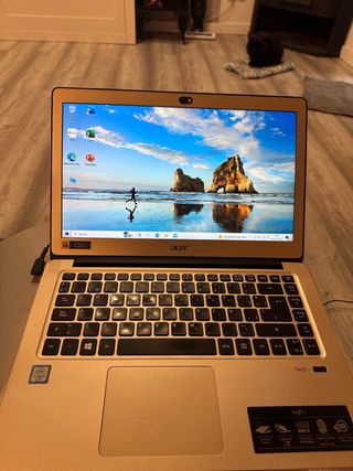 Portátil Acer Swift en color negro/ azul oscuro. En buen estado, utilizado dos años para la universidad. Lo vendo porque ya no lo utiliza. - Ultraligero - Pantalla de alta resolución. - Pantalla tactil / Abertura con huella digital - Dolby audio -Bateria buen rendimiento - Windows 11 home - Pantalla grande Incluyo cargador y funda.