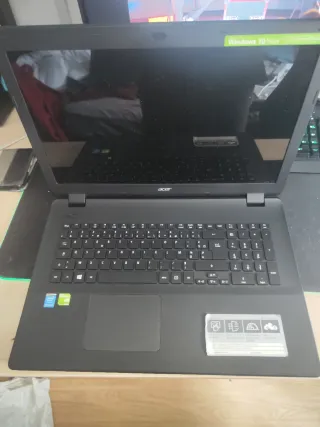 Ordenador portátil Acer en color negro y plateado. - Pantalla de 15.6 pulgadas. - Procesador Intel Celeron. - 4 GB de memoria RAM. - Disco duro de 300 GB. La batería funciona. Sólo el adaptador de corriente ya vale 20€.