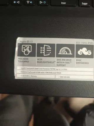 Portátil Acer, falla al encender, da un serie de pitidos constantes, aunque enciende bien. Le faltan dos teclas como se muestran en las imágenes. La batería funciona bien y está formateado y realizado el mantenimiento. No tiene el cargador.