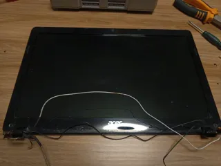 Pantalla de portátil Acer en color negro. Ideal para repuestos o reparaciones. - Bisagras incluidas. - Cable de conexión a la placa base. Proviene de un Acer aspire E1-531 Funciona perfectamente,