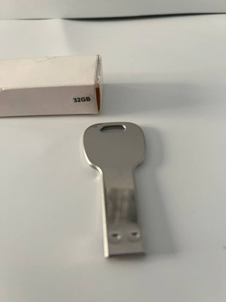 Memoria USB de 32GB con diseño metálico en forma de llave, práctica, resistente y elegante. Su estructura de acero inoxidable garantiza durabilidad y protección frente a golpes o arañazos. Ideal para guardar fotos, vídeos, documentos y música con total seguridad. Compatible con PC, portátiles, televisores y coches. Su diseño compacto permite llevarla en el llavero sin ocupar espacio. Plug & Play, no necesita instalación. Perfecta para uso diario, trabajo o regalo. Nueva, sin uso, en su caja original. 🚚 Envíos por Wallapop o contra reembolso (5 €).