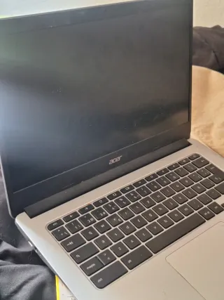 Chromebook Acer 314 en color negro y plata. Un portátil ligero y funcional. con su cargador - Teclado QWERTY español. - Touchpad integrado.