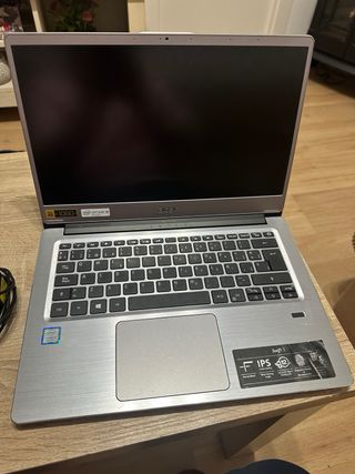 Portátil Acer Aspire 3 en color negro. Perfecto estado, tanto pantalla, teclado y ratón táctil. Lo único que tiene rota la bisagra de la pantalla lado derecho como se ve en la foto, pero no afecta nada al funcionamiento. Viene con Bolsa de transporte de regalo, y su cargador. - Procesador Intel Core i3-6006U. - 8GB de memoria RAM. - Pantalla Full HD. - Conexión HDMI