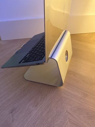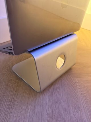 Soporte de acero para MacBook. Su diseño minimalista y robusto eleva tu portátil. - Fabricado en acero de alta resistencia. - Diseño elegante y moderno. - En Amazon 54€ - Peso: 1,50 kg