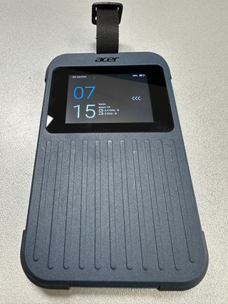 Vendo Router 5G portátil ACER diseño ruguerizado perfecto para la conectividad en cualquier parte del mundo, por ejemplo en autocaravanas, medios de transporte... puede dar conexión hasta 16 dispositivos - Batería Integtada 6500mAh perfecta para todo el día de trabajo - Pantalla integrada. - Redes wifi 2,4Ghz y 5Ghz - Conexión 5G ultrarrápida. - Correa de sujeción. - Resistente a salpicaduras - Incluye 20 GB de datos internacionales SIMO. Menos de un año de uso, en perfectas condiciones de batería y estado exterior