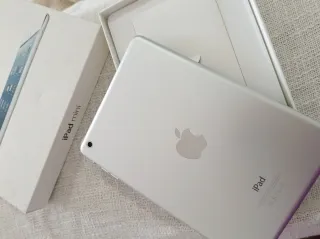 Tablet iPad mini modelo A1432 en color plata y blanco. Incluye su caja original. - Pantalla de 7.9 pulgadas. - Diseño ligero y portátil.