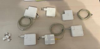 Cargadores para portatiles Apple macintosh. Están estropeados. Algunos han sido reparados pero actualmente no se asegura que funcionen. Para alguien que quiera piezas, repararlos o hacer inventos. Se venden todos en pack por el precio que sale.
