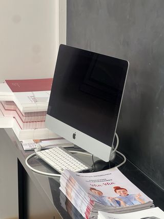 Ordenador de sobremesa Apple iMac en color plata y blanco. - Diseño elegante y moderno. - Teclado blanco incluido. se vende porque ahora usamos portátiles en perfecto estado