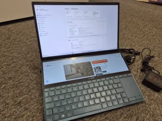 Portátil ASUS ZenBook Duo con pantalla secundaria. - Pantalla principal de 14 pulgadas. - Pantalla secundaria táctil. - Diseño elegante en azul y plata. - Intel Core i5-10210U - NVIDIA GeForce MX250 (10W) - 14.0”, Full HD (1920 x 1080), IPS - 512GB SSD - 8GB LPDDR3, 2133 MHz - 1.50 kg (3.3 lbs) - comprado por trabajo hace 3 años por 1.169,-€