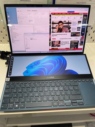 Vendo ordenador portátil Asus ZenBook Pro Duo en color azul recién revisado, 100% funcional, super potente, ideal para diseñadores y gamers. Características: - Procesador Intel i7-10870H - 32 GB de memoria RAM - 1 TB almacenamiento SSD NVMe - Gráfica nVIDIA GeForce RTX 3070 8GB DDR6 - Pantalla principal 15,6" 4K (3840x2160) OLED táctil - Pantalla secundaria 14" 4K (3840x1100) táctil - WiFi 6 + bluetooth 5.0 - Webcam HD con IR - Cargador original 240W - Windows 11 Professional original + Office 2021 Professional original Se puede ver y probar en Madrid, calle Hermosilla (zona Goya). No cambios. No negociable. Gracias.