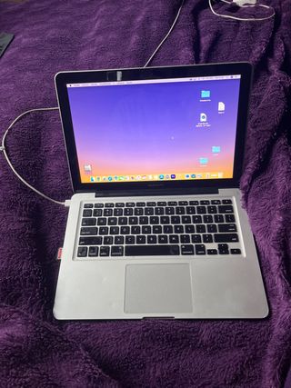 MacBook Pro de 13 pulgadas del año 2012 (mediados). Incluye cargador, y como el teclado es inglés, también lo vendo con una funda de teclado roja con la distribución de teclado español. El portátil funciona bien, pero la base tiene algunas abolladuras que impiden que se atornille por completo. El disco duro es el original, pero la memoria RAM ha sido ampliada a 8GB, el cargador es nuevo (el original estaba roto) y la batería también ha sido reemplazada el año pasado. Precio negociable, ¡escríbeme y seguro que llegamos a un acuerdo! Se entrega en metro Príncipe Pío o en Puerta del Sur (o en una parada entre medias)