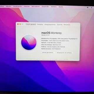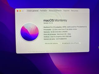 Portátil MacBook Pro de 13 pulgadas con sistema operativo macOS. - Modelo: MacBook Pro 13 - Versión de macOS: 12.7.6 Esta perfecto estado muy bien cuidado es de mi uso lo vendo x que me compre una nueva y ya no la uso.
