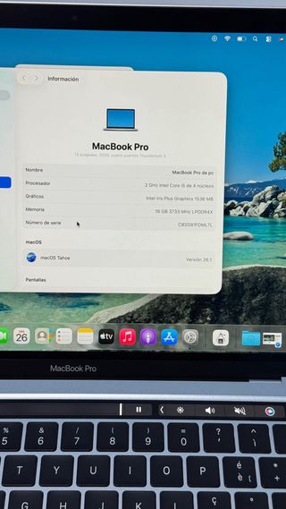 Se vende MacBook Pro Retina de 13 pulgadas del año 2019. Se encuentra en buen estado de estética y funcionamiento con poco uso. Se puede ver y probar sin compromiso. Se entrega en mano con su cargador. No se envía ni se cambia. - Procesador Intel Core i5. - 8 GB de memoria RAM. - Almacenamiento SSD de 256 GB. - batería con solo 179 ciclos de carga - OSX Sequoia