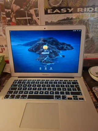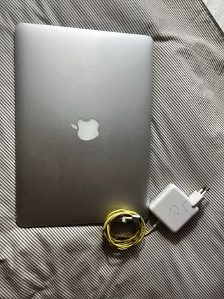 Portátil MacBook Air de 13 pulgadas, modelo de 2013. Sistema operativo antiguo, no sé si se puede actualizar más, los navegadores por ejemplo funcionan pero luego páginas como netflix no reproducen sin una actualización. De resto está perfecto, sin abolladuras ni ninguna rotura. Lo vendo porque no lo uso. La batería dura unas horas sin enchufarse, se vende con cargador. A recoger en plaza castilla