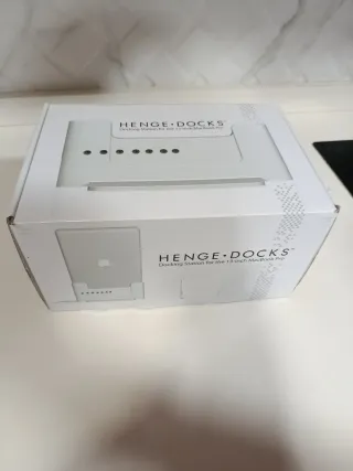 Estación de acoplamiento vertical para MacBook Pro de 13 pulgadas. - Diseño elegante y minimalista. - Permite organizar el espacio de trabajo. - Fabricado por Henge Docks.
