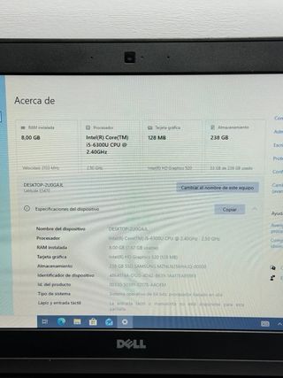 Dell Latitude E5470 i5 | 8Gb | 256Gb Estado estético en condiciones aceptables (Mirar imágenes) Funciona todo perfectamente Incluye cargador original Batería en FAIR estado (Duración no comprobada) Cuenta con: Procesador Intel Core i5-6300U 2.40GHz Memoria RAM: 8Gb RAM Disco Duro: 256Gb SSD Teclado Español con pegatinas Pantalla HD de 14" Pulgadas Windows 10 Pro