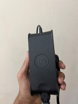 Adaptador de corriente Dell en color negro. - Diseño compacto y portátil. - Logotipo de Dell grabado en relieve.