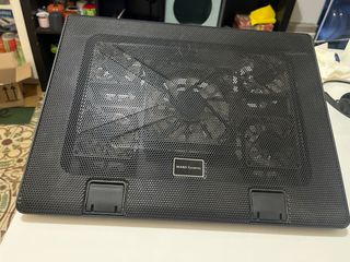 Base refrigeradora portátil KLIM, en buen estado. Ideal para mantener tu portátilo consola fresco. vale 40€ nueva en amazon, modelo cyclone, potente refrigerador con 5 ventiladores para portatiles gaming, ps4, ps5, xbox, color rojo. estructura de metal y plastico abs. dimensiones 410x292x29 mm. con velocidad y brillo les ajustables. compatibilidad con portatiles de 10 a 17 pulgadas - Diseño ligero y compacto. - Cinco ventiladores integrados. - Superficie de apoyo estable