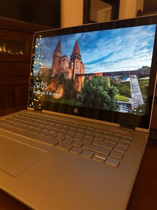 Portátil HP Pavilion x360 convertible en plata. - Pantalla táctil. - Bisagra de 360 grados. - Diseño elegante y ligero. Funciona a la perfección, lo vendo por cambiarme a Mac. Táctil funciona perfectamente. Perfecto para escritorio u oficina. No negociable