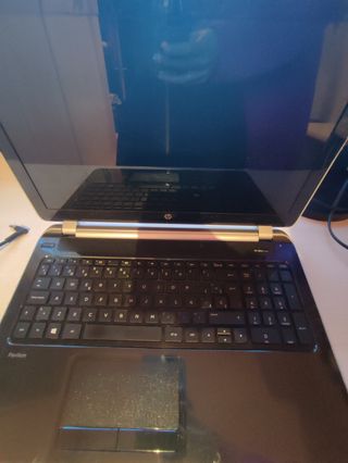 Ordenador portátil HP del año 2015. - Color blanco y negro. - Pantalla de 15.6 pulgadas. - Teclado numérico completo. - Con cargador incluido (el cargador funciona muy bien) daños visibles (en la pantalla hay un golpe en forma de círculo negro y la batería no funciona hay que cambiarla) fuera de eso todo va muy bien.