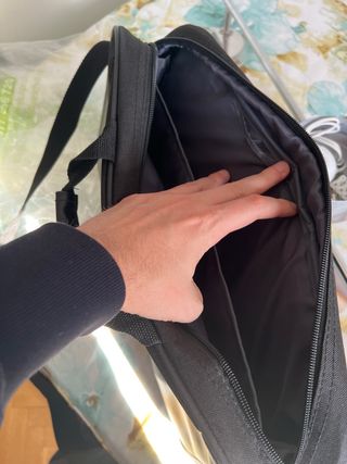 Maletín negro para ordenador portátil. En muy buen estado y de calidad. El diseño acolchado protege tu portatil. Cómodo porque pesa poco. - Diseño elegante y funcional. - Compartimento principal acolchado. - Asa de mano y correa para hombro. - Bolsillo frontal con cremallera.