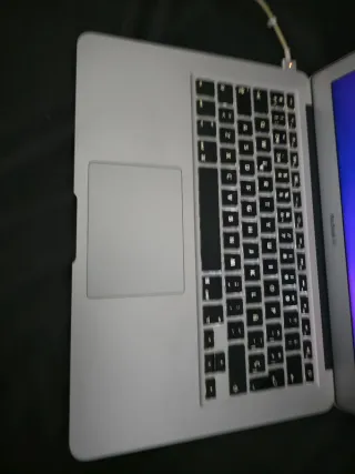 Portátil MacBook Air 2013 con procesador i7, 500 GB de almacenamiento y 8 GB de RAM. El teclado está en inglés pero es configurable en español. - Modelo: MacBook Air - Procesador: Intel Core i7 - Almacenamiento: 500 GB - Memoria RAM: 8 GB - Exterior muy bien cuidado. - Cargador original pero mejor comprar uno nuevo. - Batería con bastantes ciclos, recomiendo comprar una nueva, ya que este modelo es de batería intercambiable. - Ideal para ofimática o que tus hijos vean contenido.