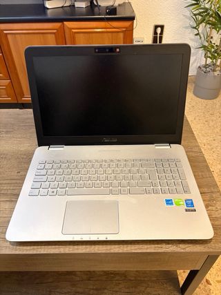 Portátil ASUS N551 en color plata y negro. - Pantalla de 15.6 pulgadas. - Procesador Intel Core i7. - 16 GB de RAM. - 1 TB de disco duro. - Tarjeta gráfica NVIDIA GeForce GTX 960M. - Sistema operativo Windows 10 Home.
