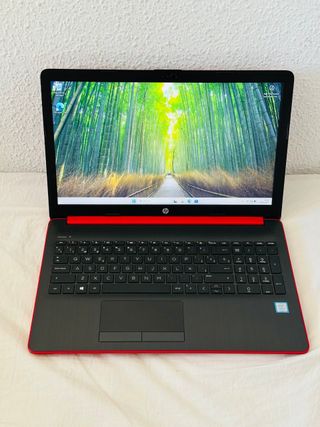 Portátil HP con acabado en negro y detalles rojos. Un ordenador de gama alta muy fluido, ideal para estudios y trabajo. Windows 11 activado con Office. - Pantalla de 15 pulgadas. - Procesador Intel Core i7 8 gen. - 16 GB RAM DDR4 - Unidad de estado sólido (SSD) de 128GB para un rendimiento rápido. - Disco secundario HDD de 1TB para almacenar datos. - Batería de más de 2,5h, cargador original incluido.