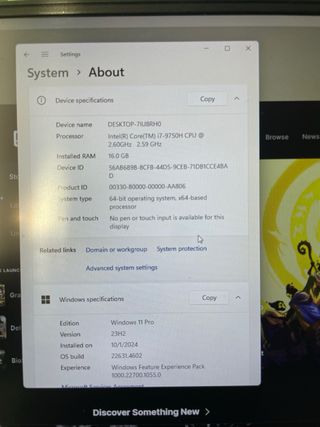 Lenovo Thinkpad en muy buen estado. ESPECIFICACIONES: Procesador: Intel® Core™ i7 CPU L620 a 2.00 GHz Memoria RAM: 8 GB instalados (7,80 GB utilizables) Almacenamiento: SSD de 240 GB Sistema operativo: Windows 10 Pro (versión 21H2), sistema de 64 bits Compatibilidad: Entrada manuscrita habilitada Funciona enchufado, la batería dura 1 hora.