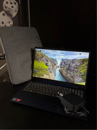 Portátil Lenovo Ideapad 3 en color azul marino. - Pantalla de 15.6 pulgadas. - Procesador AMD Ryzen 5 5500 - 8 GB de RAM ddr4 - 500 GB SSD Nvme - Incluye cargador. - Case de transporte de tela - Caja Original