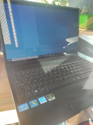 Tiene Windows 10 instalado, funciona todo bien menos la batería que habría que cambiarla, solo funciona conectado. Tiene 4gb de RAM y 500 de HDD. Intel core i5. La parte de arriba que parece que está rayada es un protector.