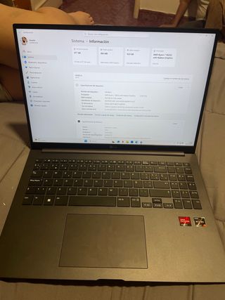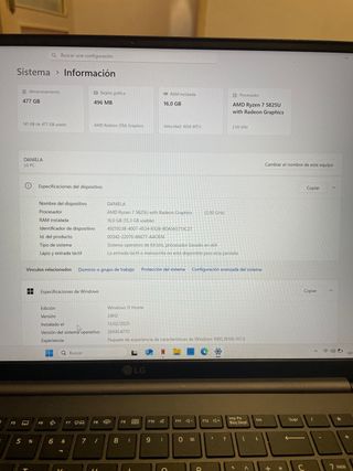 Vendo este portátil LG en perfecto estado. Es ligero y fácil de transportar. - Procesador AMD Ryzen 7 5825U con Radeon Graphics (2.00 GHz) - 16 GB de RAM (15.3 GB utilizables) - 477 GB de almacenamiento (141 GB usados)