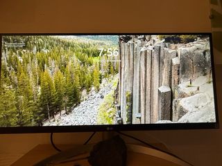 🖥💻 precioso monitor de pantalla de la marca lg , la tv que esta detras es de 49 pulgadas , asique tiene muy buen tamaño , viene con el cable de conexion a ordenador perfecto para doblar pantalla en portatil u ordenador de mesa