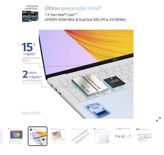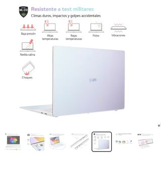Portátil LG Gram modelo 15Z90N de 15,6 pulgadas en color blanco. procesador Core i5 10 generación. peso ligero de 1,2 kg y batería de larga duración entre 6-8 horas dependiendo del uso q le des. tiene dos discos duros ssd. lo vendo porque me han dado uno nuevo en el trabajo. tiene huella dactilar en el botón de inicio. tiene algunas marcas en las esquinas pero nada importante son solo superficiales