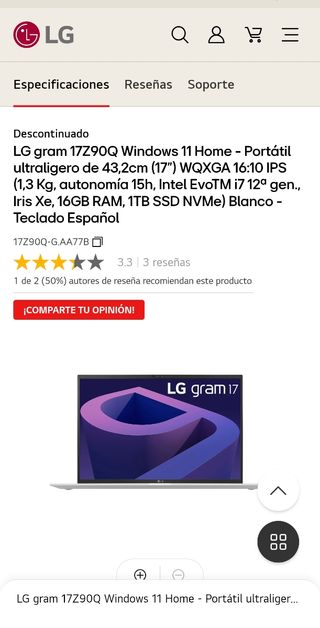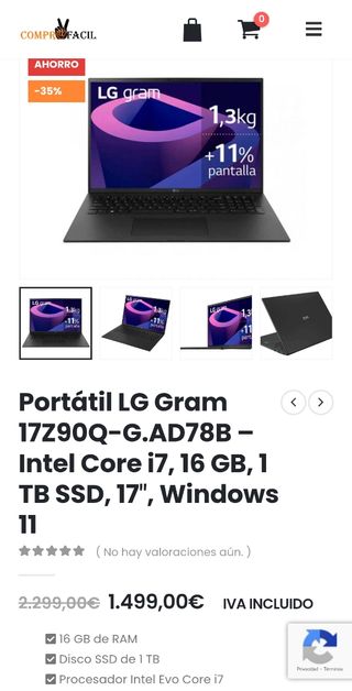 Portátil LG Gram 17Z90N 16RAM 500GB SSD