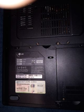 VA MUY LENTO. Con disco duro ssd nuevo. Vendo o cambio por algo que me interese ordenador portátil LG R700, con un procesador Core2Duo T7500 2,2GHz, 4mb de caché pantalla de 17.1 pulgadas, 250GB de almacenamiento ssd crucial nuevo, DVD Super-Multi-Dual, 4GB de memoria RAM DDR2 667Mhz, tarjeta gráfica Geforce 8600M GT con 512MB de memoria, conectividad inalámbrica, Bluetooth, webcam de 1.3 MP. Sistema operativo Windows 10, incluye cable cargador (la batería dura poco). Tiene varios pixeles muertos. Recien cambiada pasta térmica a cpu y gpu con Artic mx-4, limpiado ventilador y disipador. Funciona muy lento. No hago envíos.