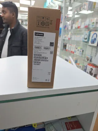 Portátil Lenovo en tonos negros y marrones, presentado en su embalaje original. - Diseño compacto y ligero. - Incluye asa para facilitar su transporte. - Pantalla de buen tamaño para trabajar o estudiar.