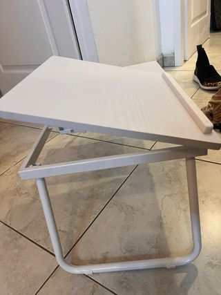 Mesa portátil ajustable ideal para trabajar con el portátil, estudiar o usarla como bandeja en la cama o el sofá. Muy práctica y ligera. ✔️ Color: Blanco ✔️ Estado: Muy buen estado, apenas usada ✔️ Ajustable: Se puede inclinar para una mejor postura ✔️ Material: Estructura estable de metal y superficie estilo madera ✔️ Perfecta para: Teletrabajo, estudiar, ver series, leer, etc. Funciona perfectamente y es muy cómoda. La vendo porque ya no la necesito. Entrega en mano.