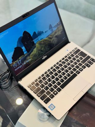 **Portátil Fujitsu S936** * **Sistema operativo:** Windows 11 * **Procesador:** Intel i5 6200U a 2,3 GHz * **Memoria RAM:** 12 GB DDR * **Almacenamiento:** 250 GB SSD * **Pantalla:** Full HD * **Batería:** Nueva, con cargador original. **Observaciones:** * Presenta una pestaña rota en la batería, la cual se puede pegar sin que afecte al funcionamiento. * Se aprecia una marca en la pantalla, no visible a simple vista. **Características destacadas:** * Compacto y ligero, ideal para su autonomía. * Compatibilidad con la instalación de cualquier programa bajo demanda. * Posibilidad de envío.
