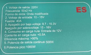 Inversor de energía Sanda de 500W con salida de 220V y entrada a 12V, ideal para viajes en coche, caravanas, camping o como respaldo en cortes eléctricos. Proporciona una potencia continua de 500W y hasta 1000W en picos de arranque, con protección automática contra sobrevoltaje y bajo voltaje, además de fusible de 40A. Su eficiencia es superior al 90%, garantizando un rendimiento estable y confiable. Permite conectar dispositivos como televisores, portátiles, cámaras, pequeños electrodomésticos y herramientas ligeras. Compacto, resistente y fácil de usar, es la solución perfecta para llevar energía donde la necesites.